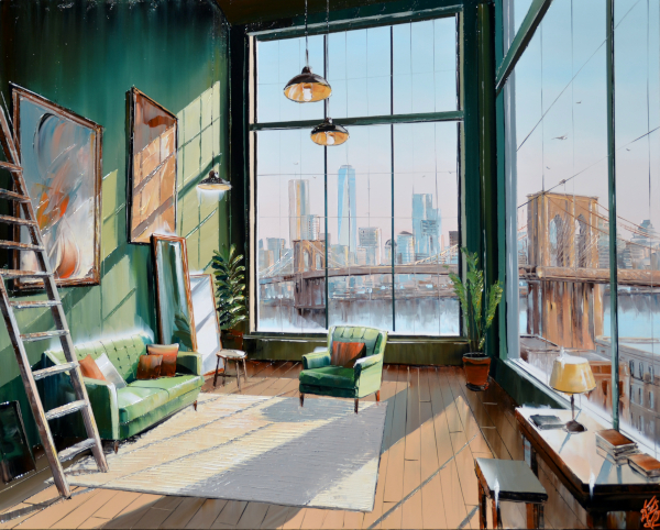 Atelier sous les toits (60×60 cm) – Huile sur toile