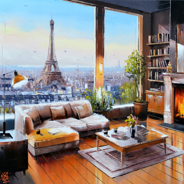 Paris auprès du feu (60×60 cm) – Huile sur toile – VENDU