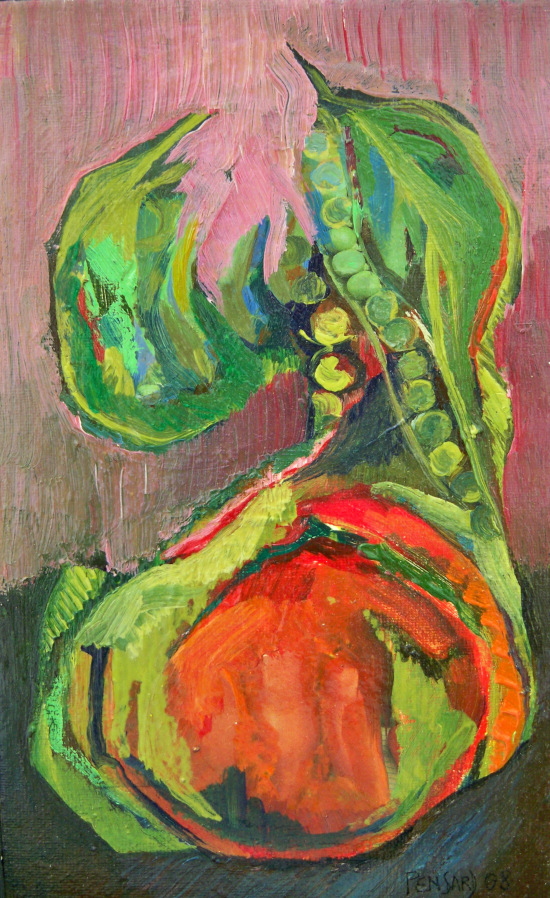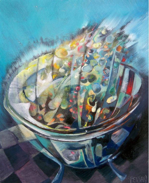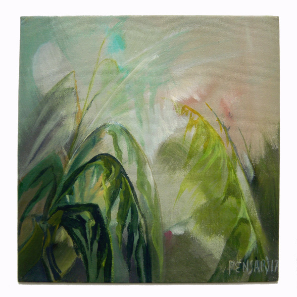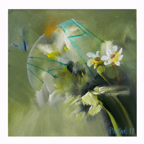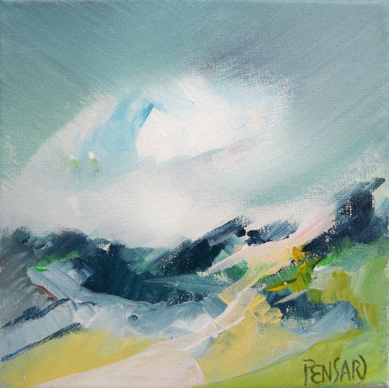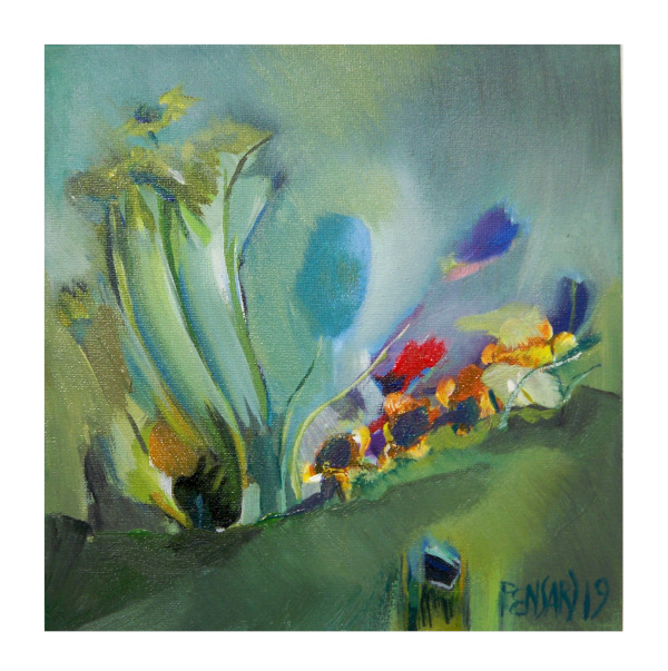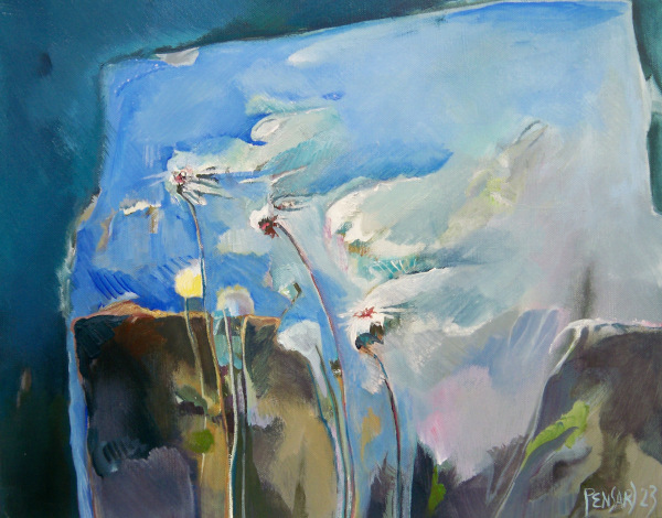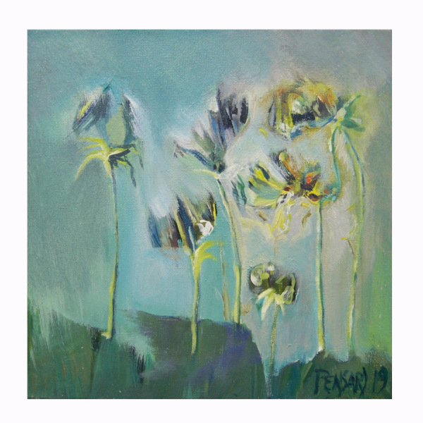 Il y a aussi ses « petits bonhommes », des petits personnages très identifiables qui nous touchent par leur simplicité, leur candeur, leur attente… Car voilà, ces petits êtres semblent en transit. Ils guettent, leurs grands yeux rivés vers le ciel. Des yeux écarquillés qui s’émerveillent et qui redoutent, qui nous posent question aussi.