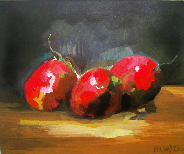 Un autre de ses univers est constitué de portraits ou de familles. Sereins, simples, une part d’enfance exacerbée et un regard captivant. Toujours hors du temps, dans un espace tout autant indéfini, souvent statiques, parfois même comme emmaillotés. Des personnages « totems » qui trouvent leur raison d’être non pas dans leurs actions mais dans ce qu’ils ont à nous dire. Ils nous observent, les yeux rivés aux nôtres, en prise directe avec notre sensibilité, notre intimité.