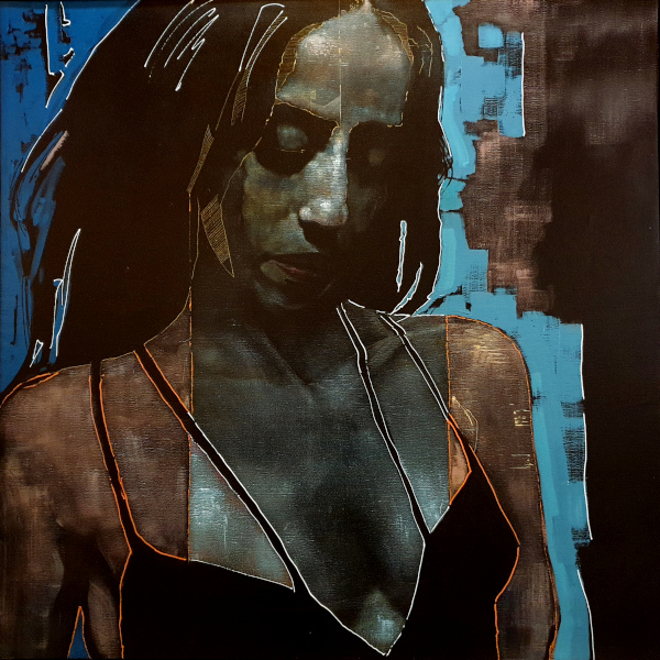 Le temps ne laisse ses traces que sur les fonds. Que ce soit sur du métal oxydé, ou des fonds volontairement craquelés, à base de terre pour les arrimer à la réalité de notre monde, ils contrastent avec le côté lisse de ses personnages. Tour à tour déchirés, grattés, patinés, lumineux…. À l’image de nos vies… et de nos émotions !