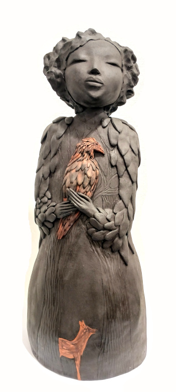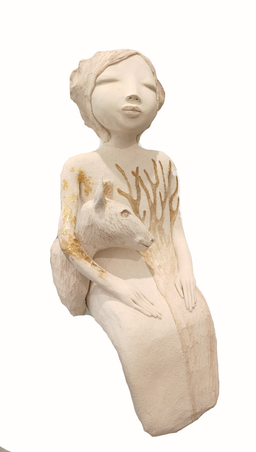 Baignée dans l’univers de l’art dès son plus jeune âge puisque cette artiste est fille de sculpteur, elle a débuté son propre parcours artistique avec la résine avant de passer rapidement au travail de la terre.