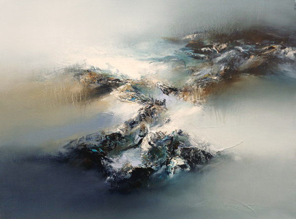 Force et sensualité de l’abstraction lyrique, ces œuvres sont en perpétuelle mutation. Les toiles sont riches, complexes tout en défiant la pesanteur. Des contours légers et vaporeux se heurtent au cœur en mouvement, tout en matière, trouvant son équilibre au milieu du chaos originel…